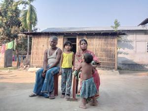 Sukur Ali in front of his home with his wife and children