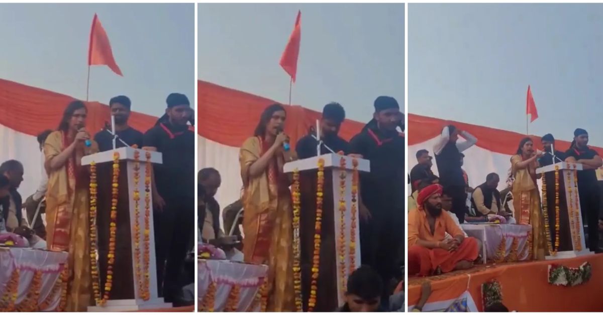 An unidentified speaker urged residents to remain vigilant in their neighbourhoods, warning them not to allow Hindu women or girls to be taken away by people labelled as “jihadis.”