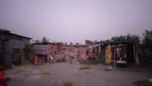 Makeshift roadside shanties where Purna Arjya and other flood-affected people are forced to live
