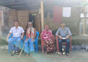 Elachan Bibi and her husband with CJP Assam team outside her home