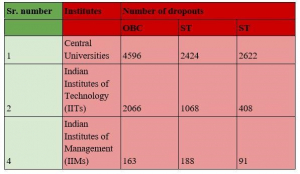 The data further revealed that in Central Universities alone, 4,596 OBC students, 2,424 SC students, and 2,622 ST students had dropped out during this period. In the IITs, 2,066 OBC students, 1,068 SC students, and 408 ST students discontinued their studies. Similarly, in the IIMs, 163 OBC, 188 SC, and 91 ST students dropped out, reported SabrangIndia.