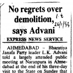 Speaking to The Indian Express, Liberhan, who submitted his report in June 2009 indicting Atal Bihari Vajpayee along with L K Advani and Murli Manohar Joshi, said: “The Supreme Court’s decision to hear the appeal in the matter of the Ayodhya title suit (the decision of the Allahabad High Court in 2010) on a day-to- day basis from December 5 will adversely affect the demolition suit. What is the point of doing this? If it is decided that it is Wakf property, then one side is established as guilty of demolition. And if the Hindu sides get it, then the act of demolition becomes seen as ‘justified’ — to reclaim own property. This demolition is known to people alive and must be decided first. They can take a few weeks or months to do it.”