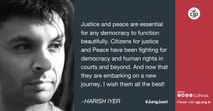 05-Dec-2018 CJP ने हमेशा हक़ और इन्साफ़ का साथ दिया है Word of Support from Javed Jaffrey 05-Dec-2018 CJP is helping in keeping the unjust exclusions from the NRC in Assam to a minimum Word of Support from Kavita Krishnan 05-Dec-2018 Human Rights is Advancing Because of CJP Word of Support from Harish Iyer 10-Feb-2018 There can be no Peace without Justice Words of Support from Mahesh Bhatt 10-Feb-2018 Organisations like CJP are essential in India Words of Support from Kumar Ketkar 10-Feb-2018 CJP का हर संघर्ष संविधान के अनुसार है महाराज कृष्ण रैना CJP को दे रहे हैं प्रोत्साहन और समर्थन 18-Dec-2017 CJP ने गुजरात दंगों के विक्टिम्स के लिए सामने से सत्ता का प्रवाह झेला है : जिग्नेश मेवानी Jignesh Mevani extends support for CJP on its relaunch on Constitution Day 29-Nov-2017 CJP exposed complicity of powerful political leaders in the 2002 genocide Words of Support from Retd. Justice PB Sawant 29-Nov-2017 What happened in Gujarat in 2002 was appalling and horrifying Words of Support from Nayantara Sahgal 29-Nov-2017 CJP: A Celebration of Civil Liberties Words of Support from Aruna Roy 28-Nov-2017 Stand up for Justice, stand up for Peace Words of Support from Joy Sengupta 28-Nov-2017 Fighting for Human Rights in the Courts and Beyond Words of Support from Harish Iyer 28-Nov-2017 CJP is committed to the Rule of Law Words of Support from Cyrus Guzder 27-Nov-2017 सत्ता को आइना दिखाना आसान नहीं होता: कन्हैया कुमार 27-Nov-2017 CJP makes a difference on the ground Words of Support from N Ram 27-Nov-2017 Steadfast Sentinel over Democratic Rights Words of Support from Sagarika Ghose Posts navigation 1 2 Next