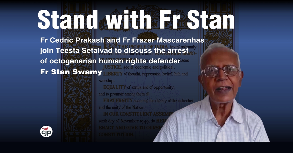 Watch: CJP secretary Teesta setalvad in conversation with, Human right activist and Jesuit priest, Father Cedric Prakash and, former principal of St Xavier’s College, Father Frazer Mascarenhas to discuss the arrest of octogenarian human rights defender Fr Stan Swamy.