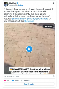 इन घटनाओं की तुरंत लोगों ने निंदा की, जिसमें इल्तिजा मुफ्ती भी शामिल थीं। उन्होंने X (पहले ट्विटर) पर फुटेज शेयर की और हरियाणा के मुख्यमंत्री नायब सिंह सैनी और पुलिस महानिदेशक को टैग करके जवाबदेही की मांग की।